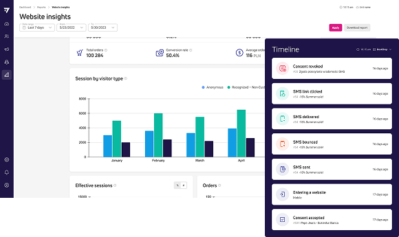 Wykrywa porzucone koszyki i wysyła automatyczne przypomnienia za pośrednictwem poczty e-mail, SMS-ów lub powiadomień web push w celu odzyskania utraconych sprzedaży.