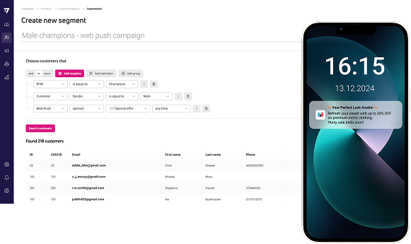 Сегменты автоматически обновляются при изменении поведения клиентов, чтобы ваши коммуникации всегда оставались актуальными и релевантными.